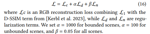 - \(n_i\) represents the normal of the splat that is oriented towards the camera