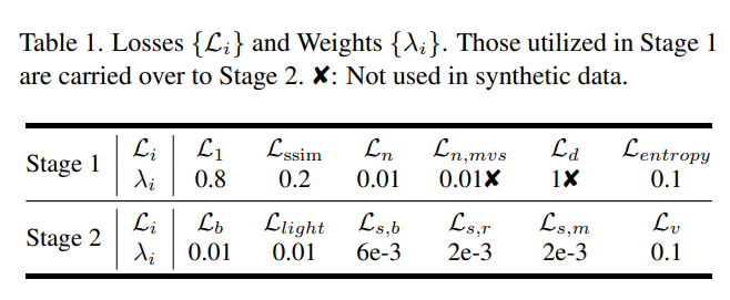 - \(L_n = \lVert N - \tilde{N} \rVert_2\) : N: 渲染网络学出来的法向量; $\tilde{N}$: 由MVS深度 $D_{\text{mvs}}$ 导出的几何一致性约束