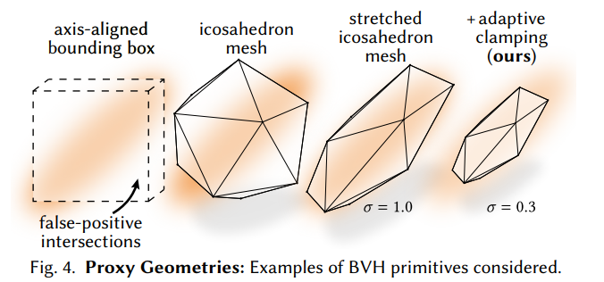 Gaussian particles will cause the traversal to have to evaluate many false-positive intersections which actually contribute almost nothing to the rendering.