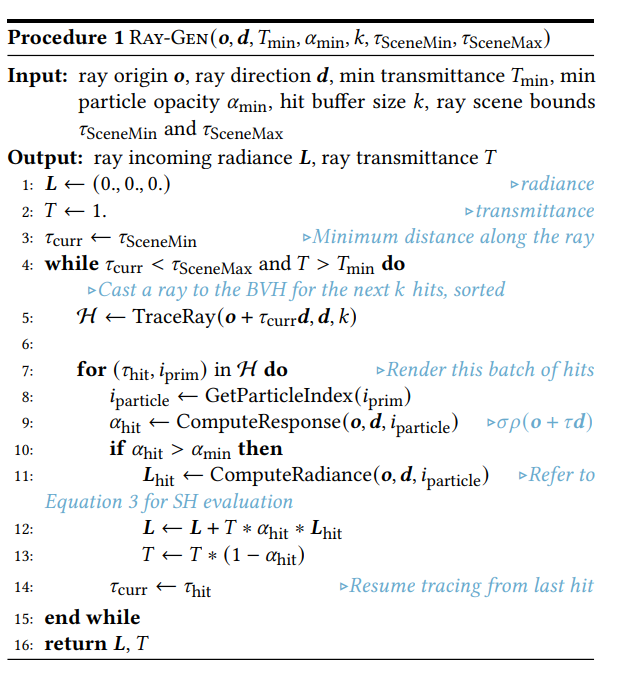 - 使用 any-hit program,它不会立即计算粒子响应,而是仅仅 收集相交的粒子索引,并保持它们的顺序。