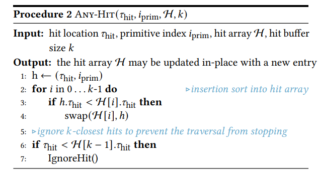 - any-hit program : during the traversal for every hit and may further process or reject the hit.
