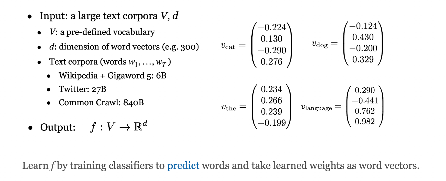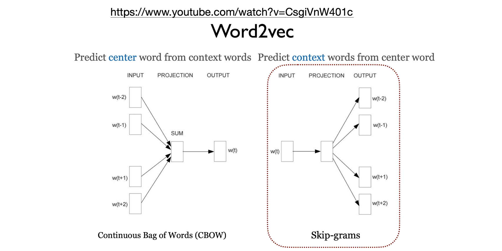 - 梯度更新:误差回传至 $W$,调整向量坐标,使得语义相近的词在空间中距离更近。
