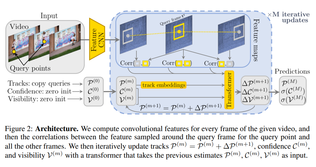 - It ingests the query point \(y_q\) and the dense tracking features \(T_i\) output by the transformer \(f\) and then computes the track.